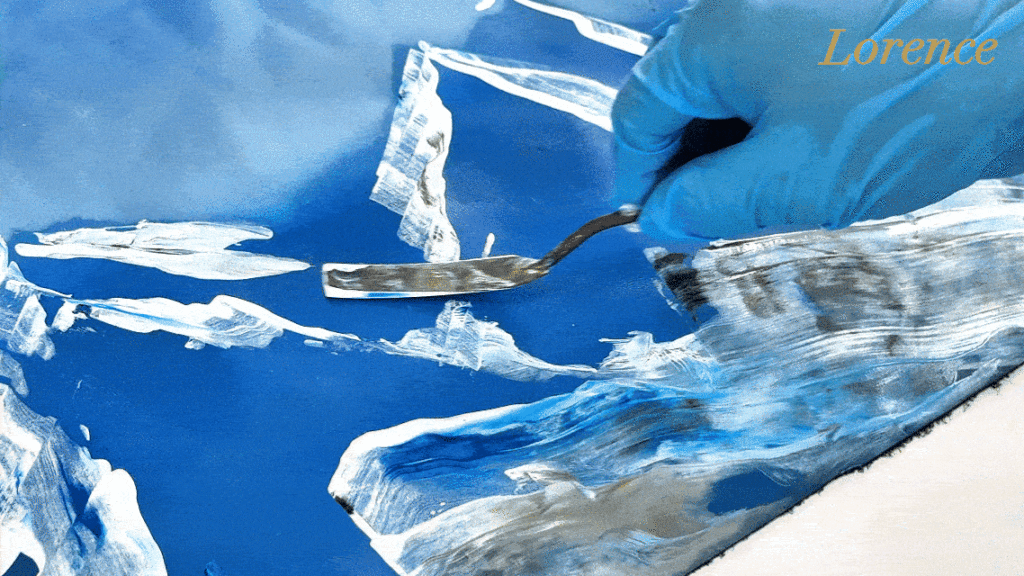 將藍色與白色 TP 顏料膏調和均勻,作為基底色調;